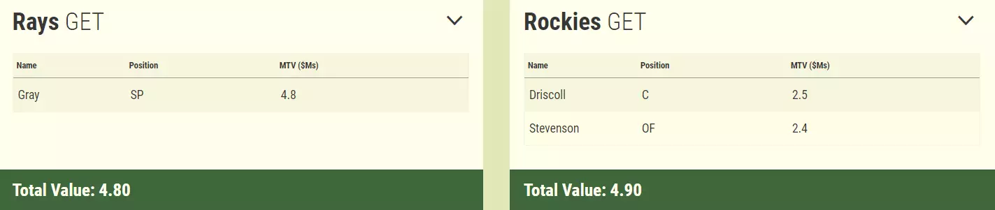 Baseball Trade Value 사이트를 통한 트레이드 시나리오: 존 그레이 - 로건 드리스콜+칼 스티븐슨